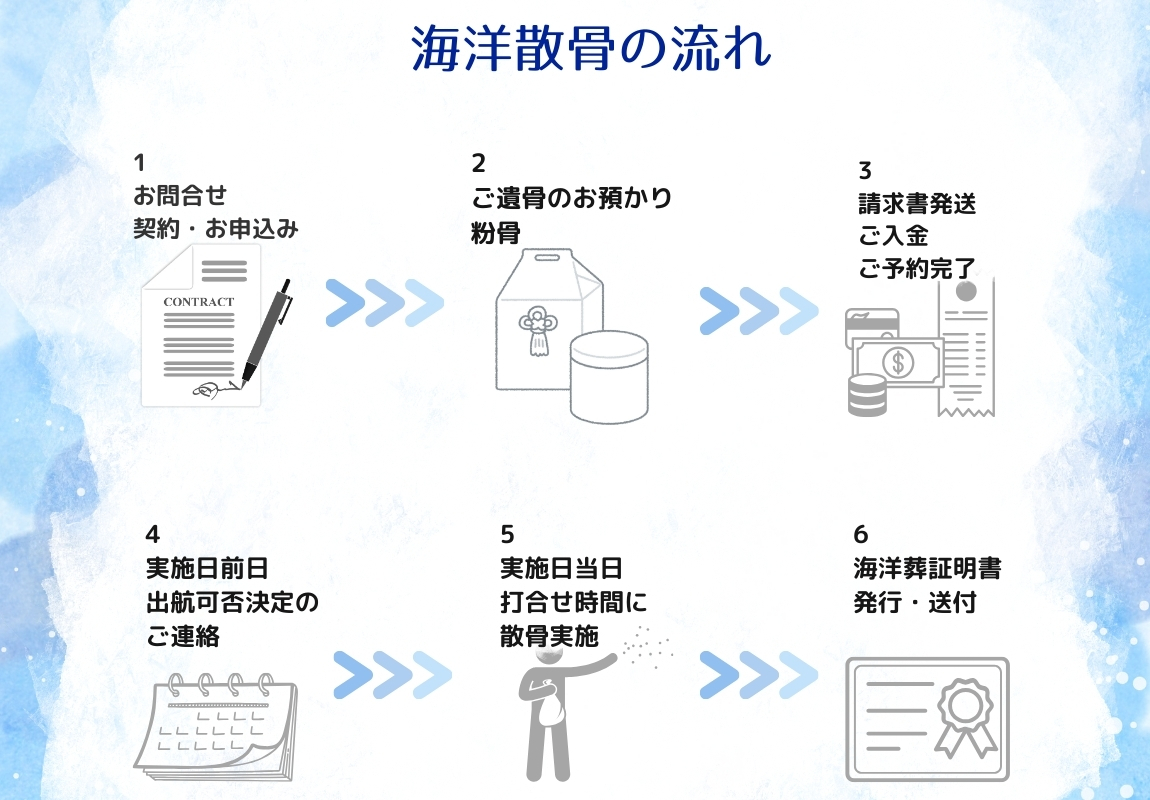 体調・体力のご不安、遠方で立ち合い困難、その他のご事情でご希望の海へ行くことのできない故人様や、ご家族様のお気持ちを代行いたします。